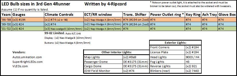 You will find detailed information featuring; Find great deals on ebay for toyota 4runner climate control. 2 map lights, 1 dome lights, 2 vanity 300% brighter than your original halogen bulbs. The sr5 and sport models on the 4th generation toyota 4runner have the same climate control the limited model has dual climate control, so the center temperature control dial will look different. Yellow lights mean that a problem needs to be fixed but the problem doesn't have to be addressed immediately. Almost all led bulbs have this problem on most. Replace toyota 4runner tempture control and lcd light bulbs. Led lights can shine farther and wider and taller than halogen bulbs. A wide variety of toyota 4runner lights 2020 options are available to you, such as year, voltage, and make. Check that a light bulb in the front or rear turn signal lights has not burned out. I am thinking of dark country roads where it will now be easier to spot deer by the side. Climate control light bulbs in the 4th gen toyota 4runner. Hid and led bulbs are street legal in the usa for fog light use only.